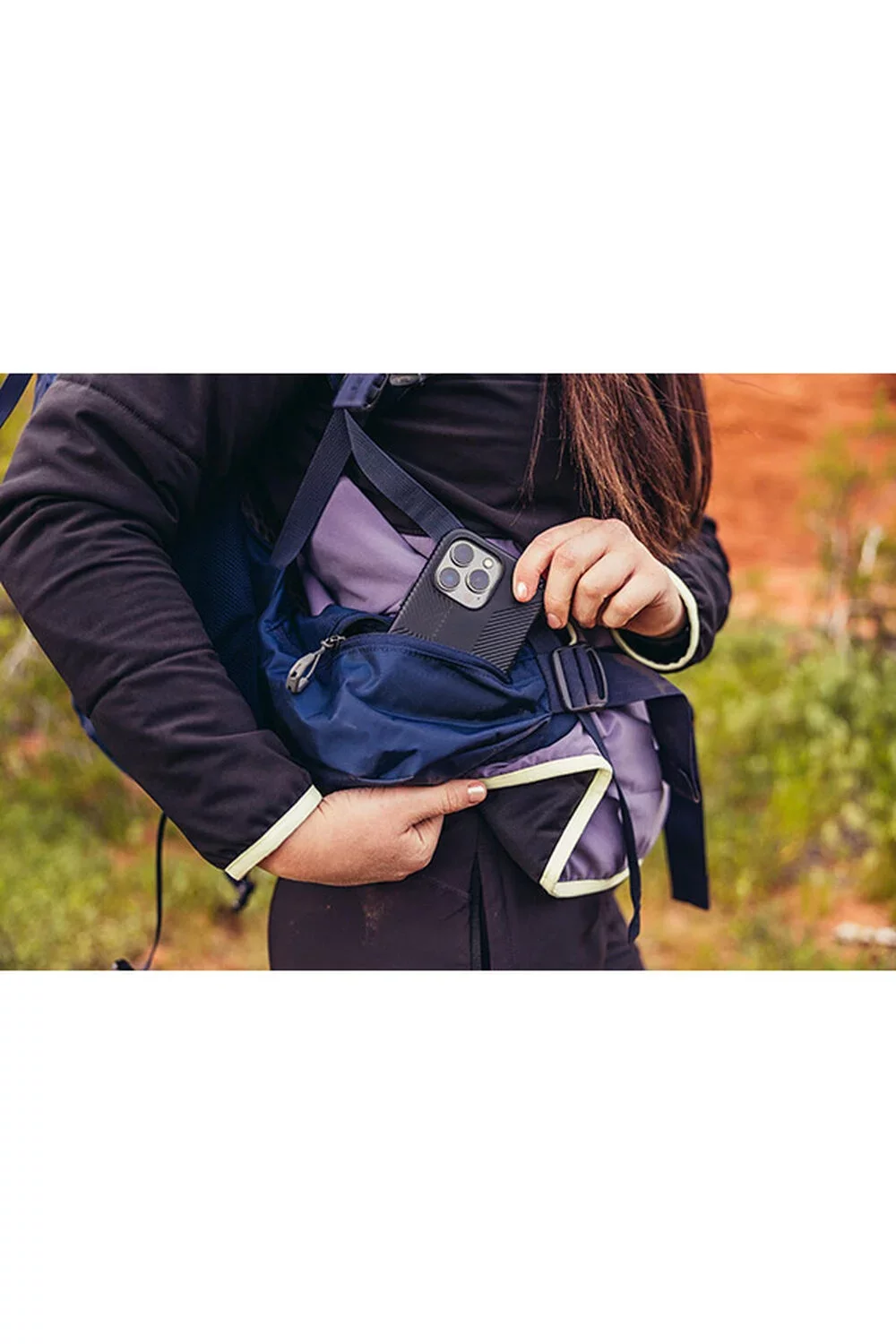 • Улови момента по време на преход благодарение на големите джобове на кръстния колан, които осигуряват бърз достъп до телефона.